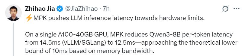 MPK 将 LLM 推理延迟推近硬件极限。比如
